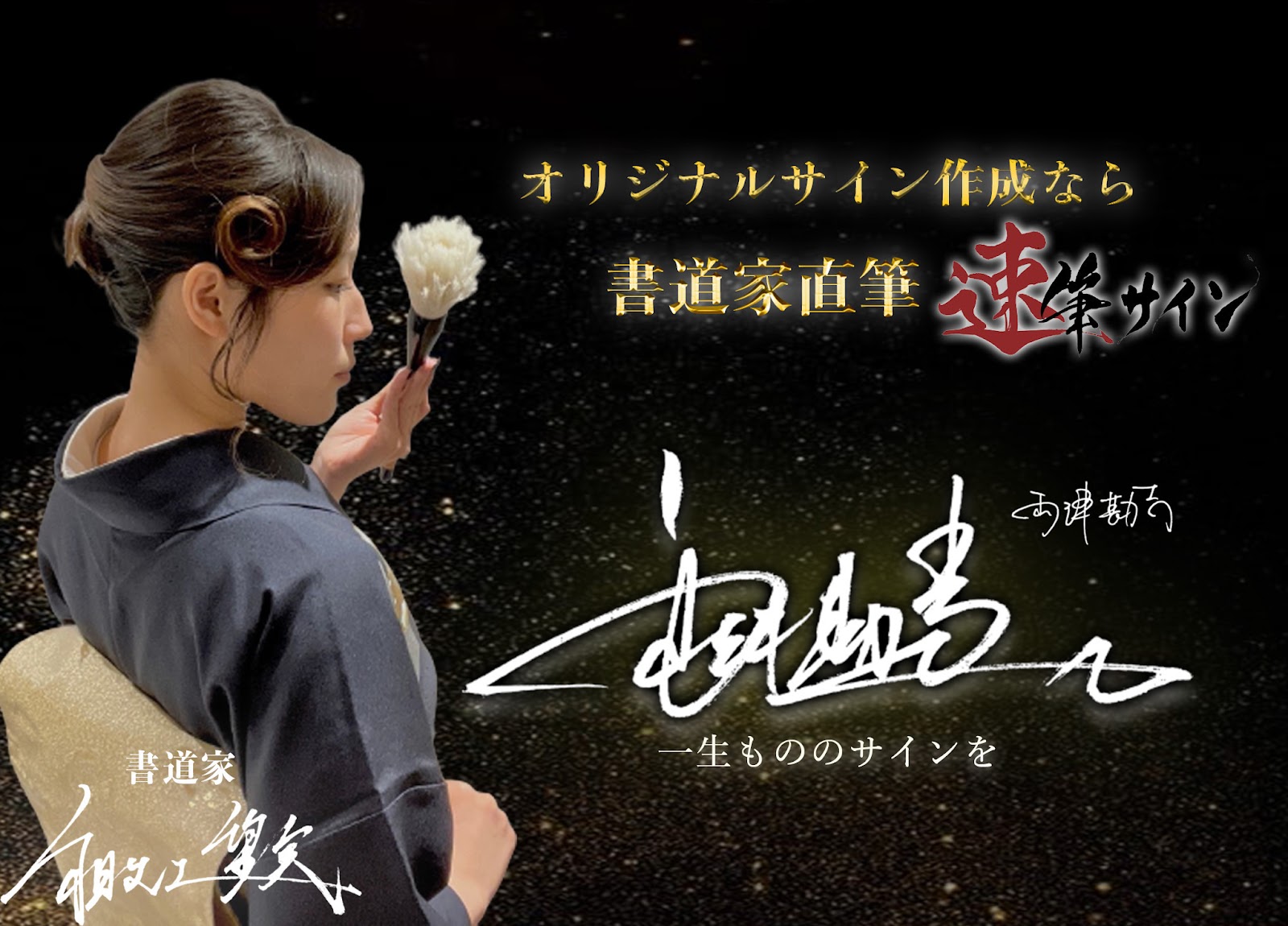 他のサービスでは、顔や名前も分からない一般的なデザイナーがサインの作成を担当していますが、速筆サインでは数々の賞を受賞している書道家がサインを作成してくれるので安心です。