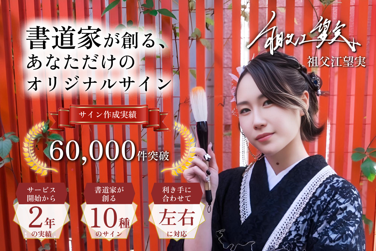 他のサイン作成サービスとの大きな違いは、サインの作成を有名書道家の祖父江望実(そぶえのぞみ)さんが担当しているという点です。